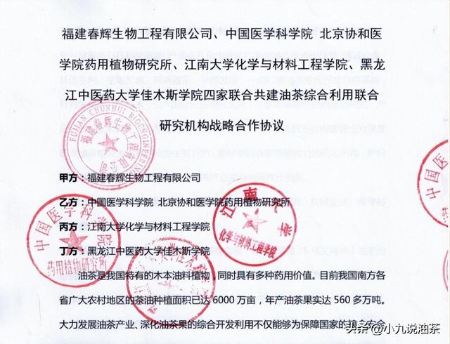 2019年初宁德九展原研发团队就与海南医学院药理学院高若男博士生团队,江南大学杨成、刘春环博士后团队合作,研究开发出转化四项茶油专利(山茶油防治胃溃疡、山茶油通便、山茶油预防三高、山茶油月子油)的纳米乳化技术,解决了初榨茶油酸性高、保质性短、异味、粘稠度高难于入口等问题,该技术可百分之百保留原茶油的营养成分。目前此项目转入南昌大学邓泽元博士生团队研发合作,进行产业化转型生产实验。九展乳化产品将成为家喻户晓的保健饮品,也将为600万茶农卖油难,单价低的现状开创一条创收之路。