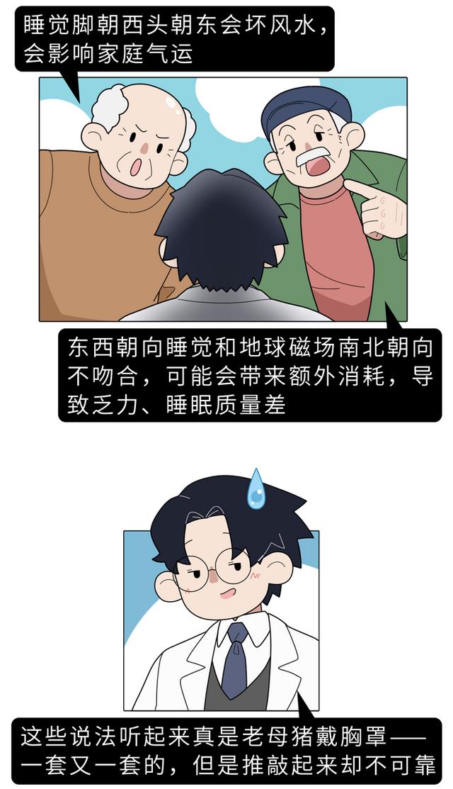 而且地球磁力线会随着四季和昼夜交替发生变化,如果非要顺着睡,基本上每天都要调整睡觉朝向,这也非常不现实。