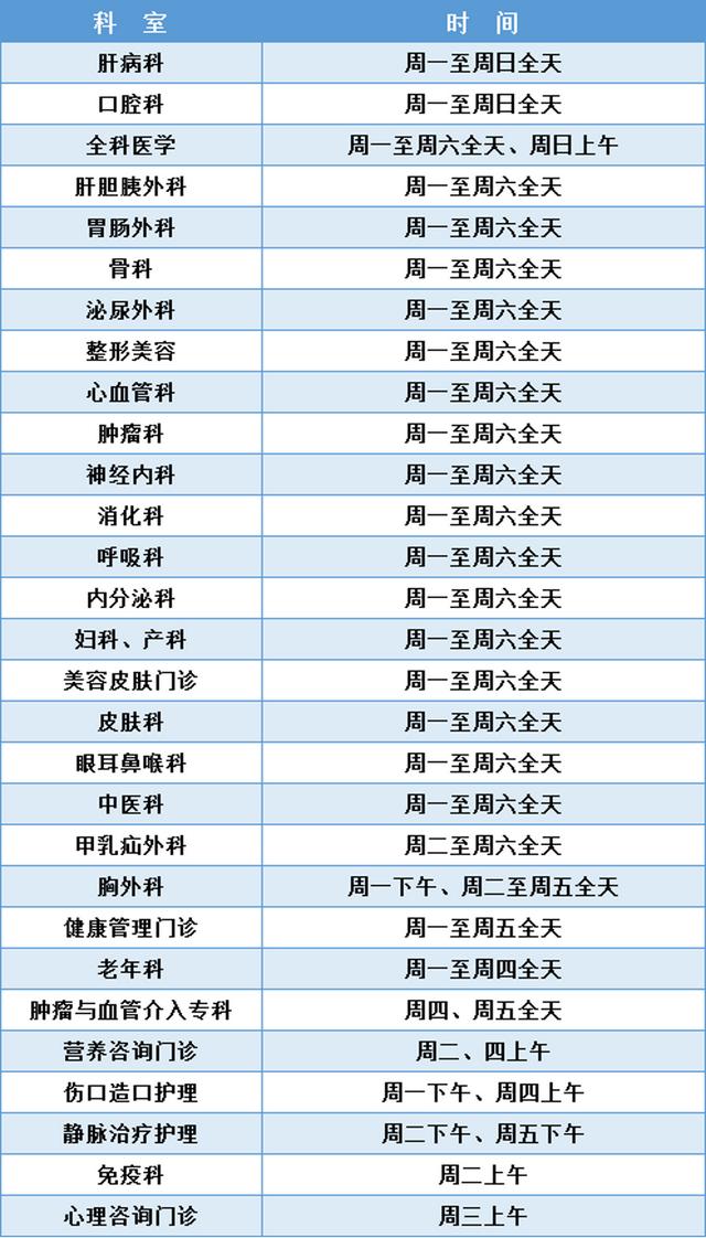 开诊期间,检验、放射、超声等医技辅助诊断科室同步开放。