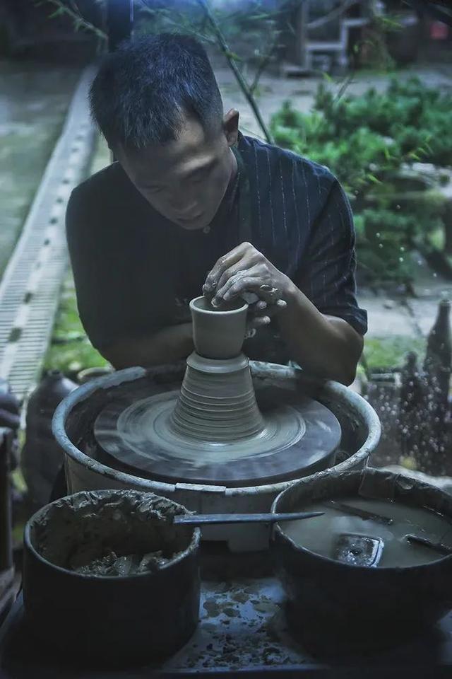 ?荣昌瓷窑里安富知青点内正在拉坯的男主,摄影:张颖