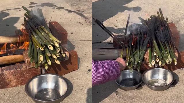 为什么说竹沥是竹子的精华呢?看看竹沥是如何获取的。取鲜竹竿,截成30-50cm,两端去节,劈开,架起,中部用火烤灼,两端即有液汁流出,以器盛之。就好像蚝油的制作一样,把生蚝放到锅里用水煮后捞起生蚝浓缩至粘稠状而成,而蚝油就是生蚝的精华,做菜提鲜一流。