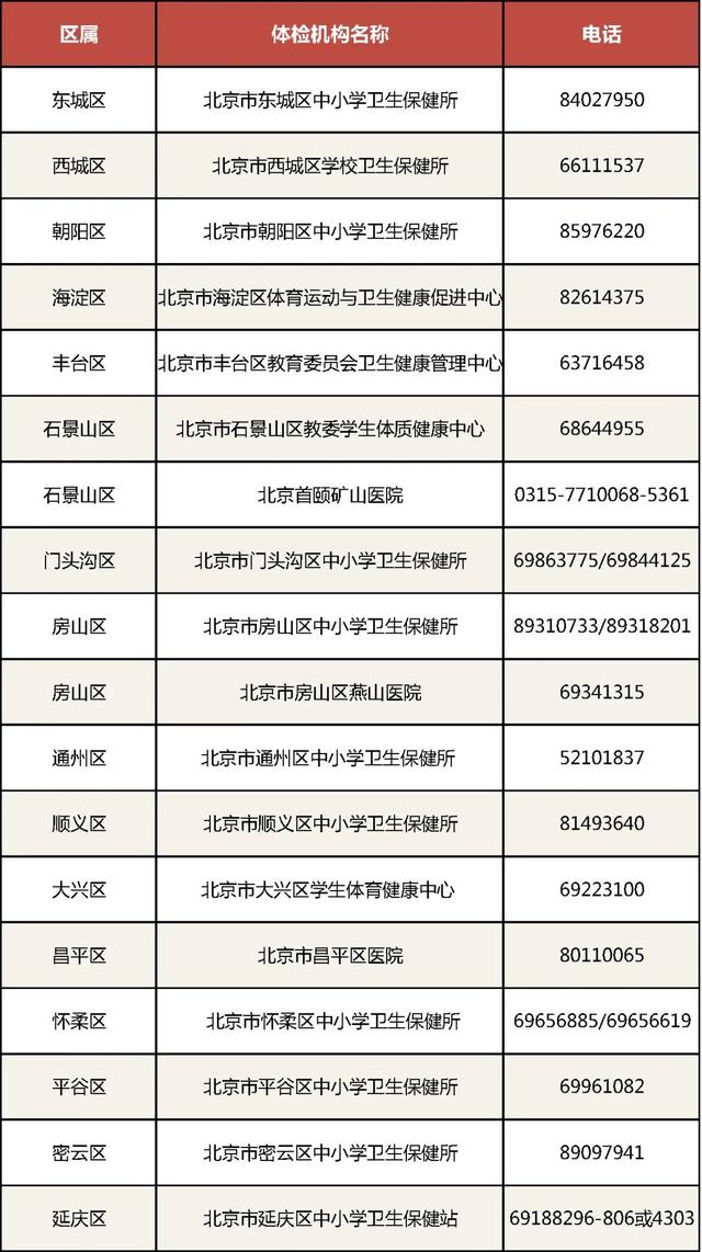 ■ 考生要按照学校的安排在规定时间到所在区中小学卫生保健所进行体检。