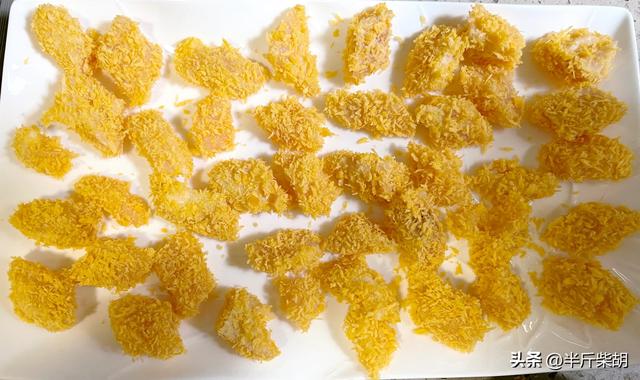 挂满“黄金甲”的鸡胸肉块儿