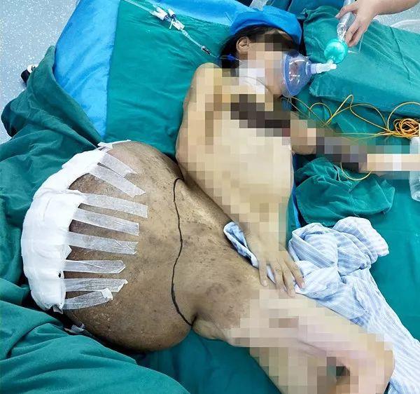 患者和家属来到河南省肿瘤医院骨与软组织科寻求帮助。专家团队经过仔细讨论,诊断为神经纤维瘤局部恶变,手术可能是患者生存下来的唯一希望。经过4小时的手术,30公斤重的“肉疙瘩”终于被完整的切下来。