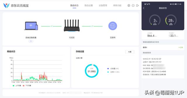 百里路由在APP里面看不到eMMC上缓存了多少数据(亚瑟和鲁班是可以看到的),我觉得这是京东云在淡化AX6000百里的“收益”属性,而是在强调它的实用属性: