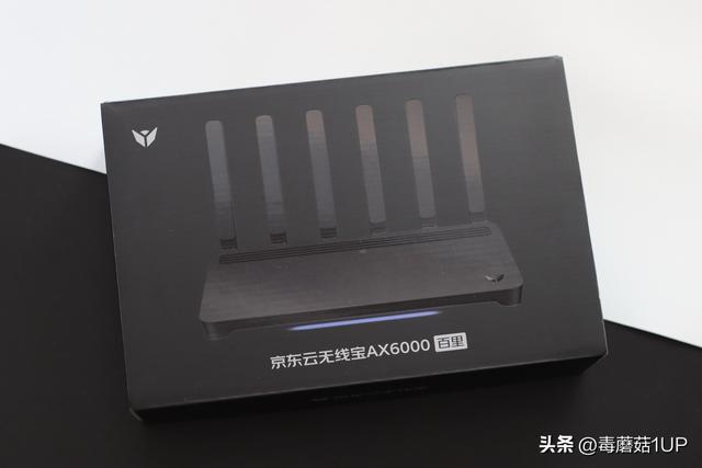 百里路由器应该是当前京东云所有路由器中,最大的一款。鲁班、亚瑟等型号都是立着的,雅典娜占地也不太大,唯有后羿是常规外形,但是后羿可没这么大的体积。不过产品包装没有因为路由器变大,而故意做得“浮夸”,包装比较简洁,黑色盒体上面印刷了路由器本体以及产品型号。