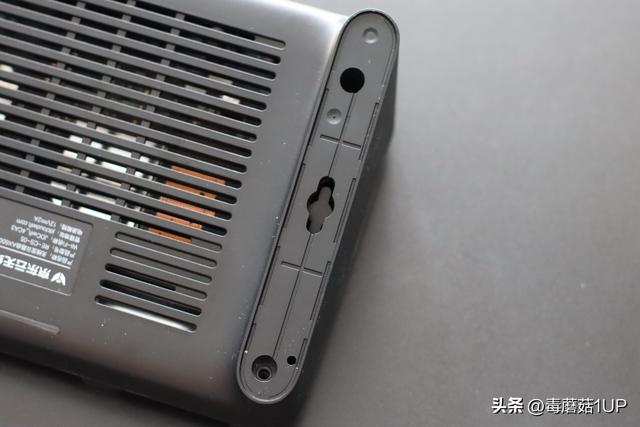 百里路由器的壁挂预留孔隐藏在脚垫下方。毕竟将路由器悬挂使用的消费者还是太少了,隐藏起来也无可厚非。四颗固定螺丝为内六方,并不是常见的十字螺丝。