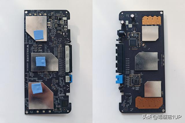 主板涉及到信号的部分均有屏蔽罩,但是2.5G芯片和千兆交换机芯片没有屏蔽罩。