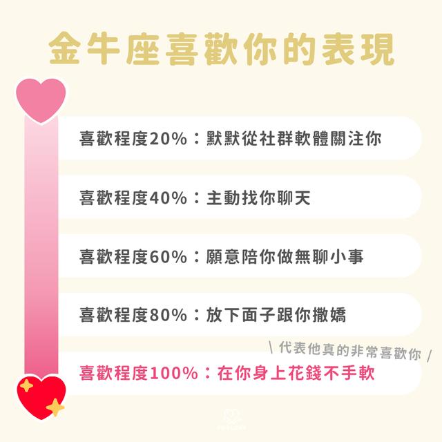 金牛座面对恋爱是蛮闷骚、内向的,所以要察觉到他们的喜欢其实并不容易,而且金牛自尊心高,又算是蛮爱面子的星座,所以当他们喜欢你的程度越高,你就越容易发现他们与众不同的那面!他们在面对喜欢的人和外人其实有着非常大的不同,当他们愿意放下面子陪你、跟你撒娇,就代表你已经渐渐掳获他的心啦~
