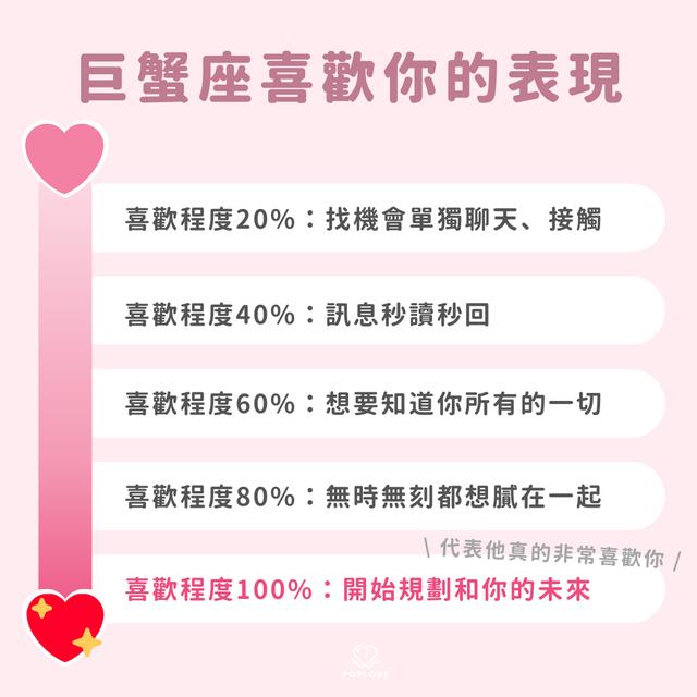 巨蟹座的喜欢其实非常明显,随着他们喜欢程度的提升,你会渐渐感觉到你的地位不断的在上升,甚至有时候在你还没察觉到时,就已经在他们心里有着无比重要的位置了。而巨蟹恋爱的最终目标,就是和爱的人共组一个家庭或是有着共同前进的目标,所以当他们开始幻想或是规划你们的未来时,那就代表他心里就只认定你啦!