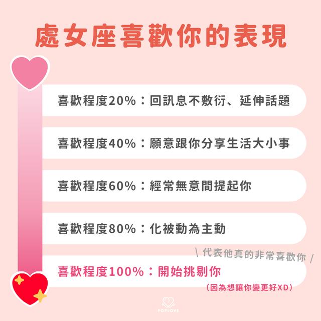 处女座其实是一个不太在乎别人想法的星座,面对他们没有兴趣的对象也是,爱理不理很正常,所以当你发现处女其实蛮常回覆讯息,甚至是主动找话题时,大概就是他们开始对你产生好感啦!而喜欢程度加深之后,处女会希望他们喜欢的对象能够达到他们心中的模样和标准,所以反而会开始挑剔你,不要误会处女开始讨厌你,这反而才是他们喜欢的表现。