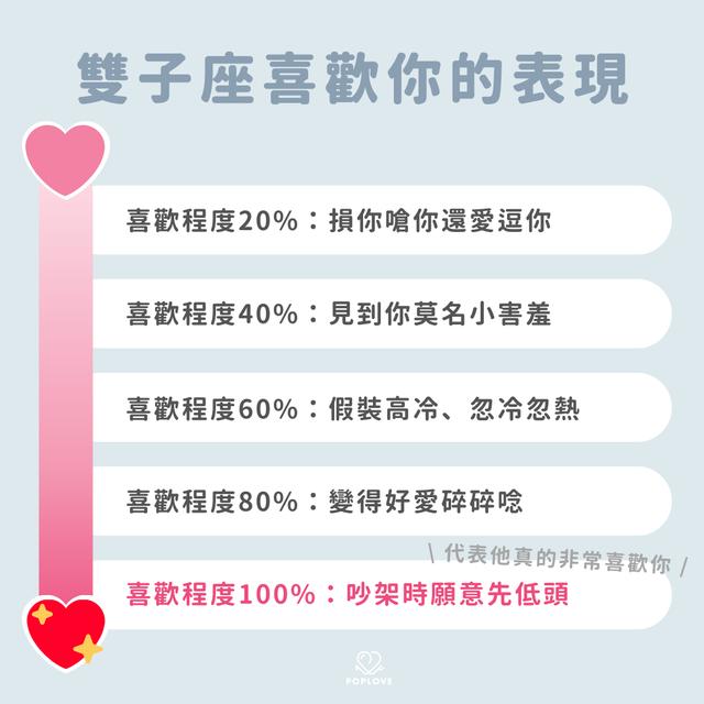 双子座的喜欢,其实会让人有点摸不着头绪,刚开始是真的蛮分不清楚他到底对你是喜欢,还是只是普通朋友的相处,要一直等到他们开始有点忽冷忽热,把你搞得一头雾水后才开始有点察觉,难道这就是他们喜欢的表现吗?邱比特只能说,要读懂双子,真的不是那么容易的事啊!