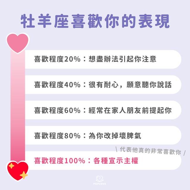 牡羊座在一开始对你有好感的时候,会先想办法吸引你的注意,毕竟他们本来就是比较活泼外向的性格,当你们的生活圈渐渐比较靠近的时候,他们就会开始展现细心的那一面,想让你看到不同的他们~当牡羊喜欢你的程度越高,就越想让大家知道你是他的!