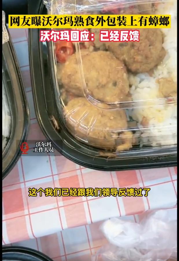 近日,浙江杭州,网友曝某沃尔玛商超熟食外包装上有数只活蟑螂在爬。沃尔玛工作人员回应称已经看过视频,并且此事已经给领导反馈过。有后续后会第一时间通知,或是在网上公布。