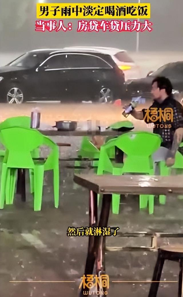 河南开封一名男子因生活压力过大,在暴雨中平静饮酒:汽车贷款和抵押贷款压力过大