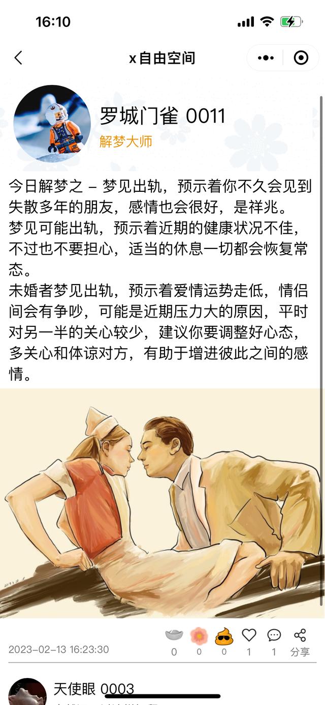 最近我老是梦到我老公出轨,导致最近我看我老公,总感觉他天天神神秘秘的。我还时不时查他的手机,查他的各种通讯软件,看看有没有什么不对劲的地方。看了好多次也没发现什么。然后,我老公出差我也很不放心,天天都要和他视频,确认他是不是真的去出差,有没有和同事在一起什么的,我老公都被我搞烦了,还问我最近怎么回事。但是,我老是梦到搞得我自己也不放心,然后我听说X自由空间有一个解梦大师,于是,我去找大师帮我解解梦,大师也很快给我回复了,大家帮我看看这可信吗?