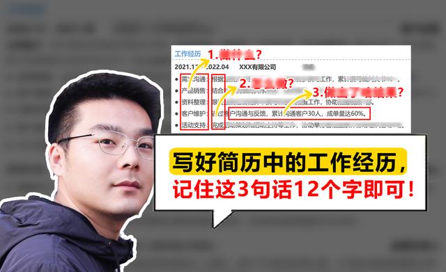 不说太多,只说你能学得会的,写好简历中的工作经历,只需记住这3句话:
