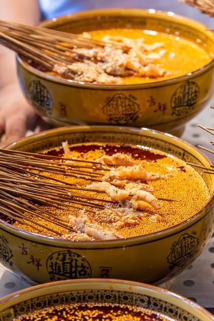制作:油料类烧到120度。下入炸香料跟跟酱料。炸至干香。捞出。下入香料粉,下入辣椒。下入青花椒粉。下入白芝麻。焖制24小时。