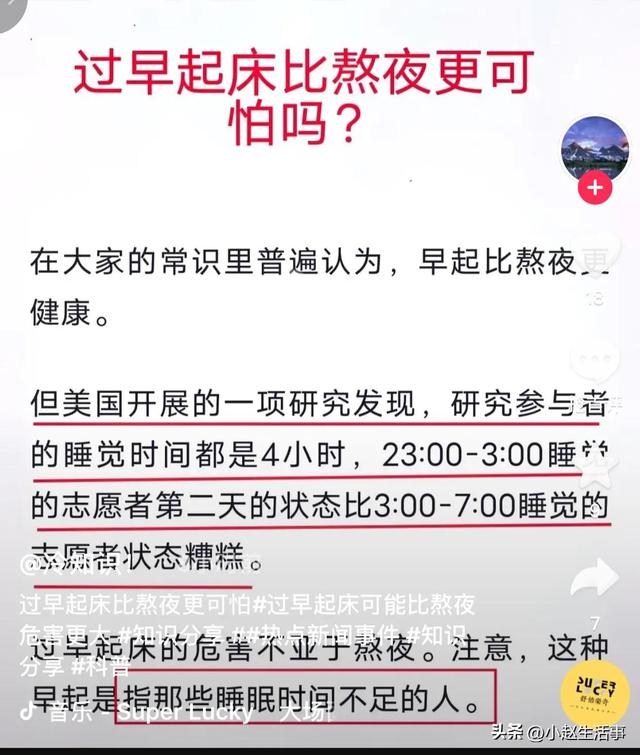 最新研究表明,盲目的早起,会比熬夜更要伤害健康,这到底是什么原因?我们到底该怎么办,总感觉我们人类活着真是太难了!