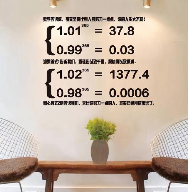 一开始,价值观的影响或许微乎其微,但随着时间推移,这些微小的差别就会逐渐增大。大家请看著名的“数学励志公式”: