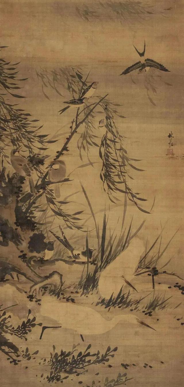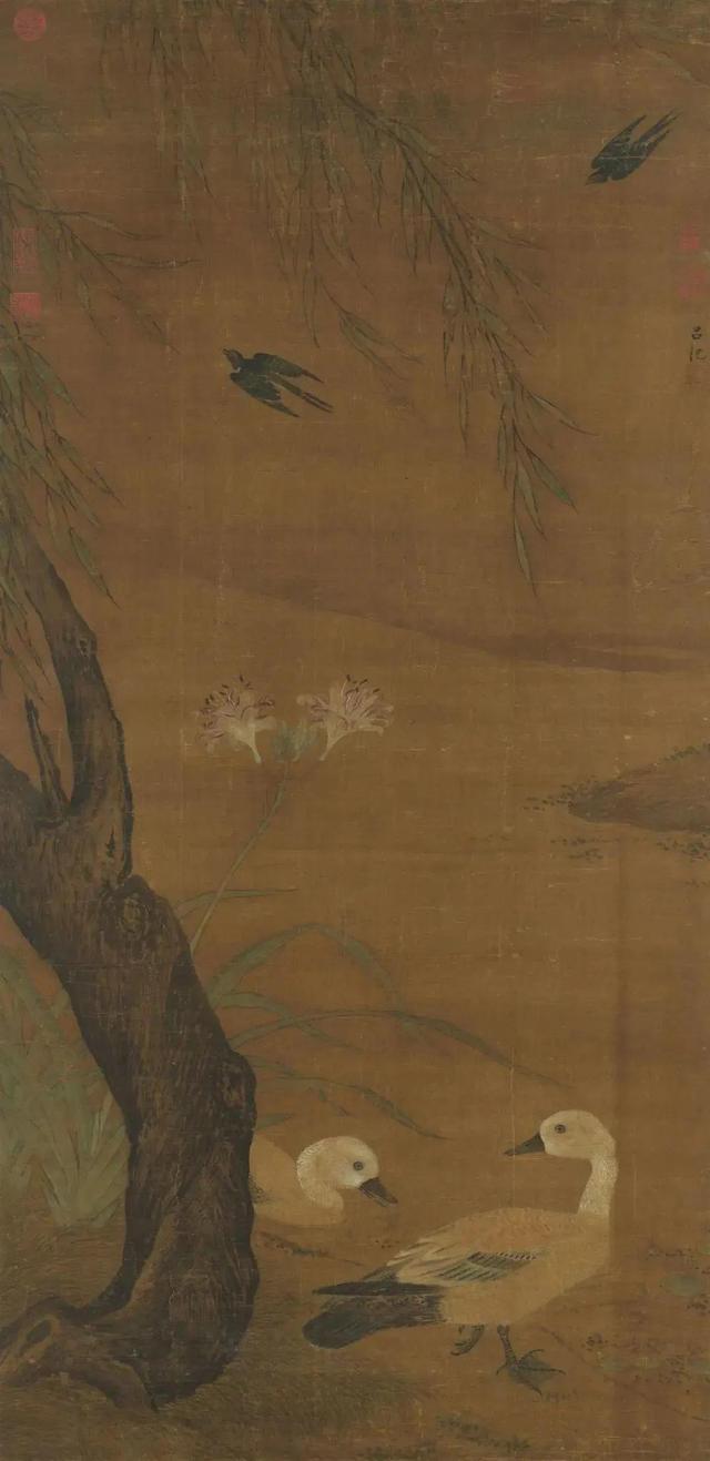 元 佚名 柳塘白燕图轴 台北故宫博物院藏
