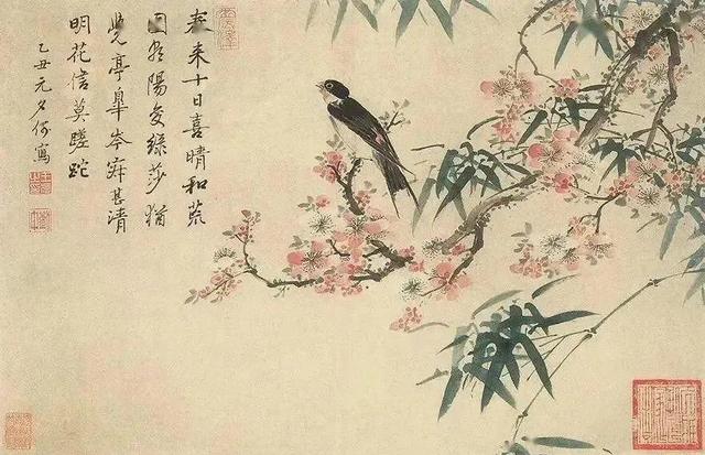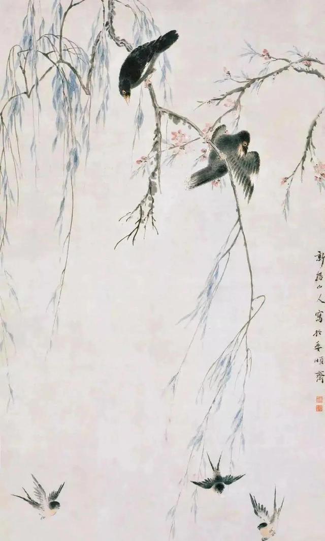 清 朱偁 桃花燕子图轴 故宫博物院藏