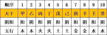 阴阳五行配以天干,每一天干都具有唯一的属性,如甲为阳木,乙为阴木,丙为阳火,以此类推。