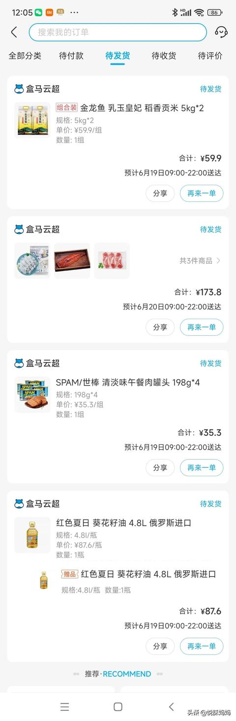 以前,觉得妈妈总是一次买很多,然后冰箱放得很满,觉得不新鲜。还是喜欢现买现烧。因为盒马什么挺方便,经常白天下单,晚上5点多准备烧饭时,菜早已送到;或者4点接孩子前去菜场晃悠一圈,挑点买买。
