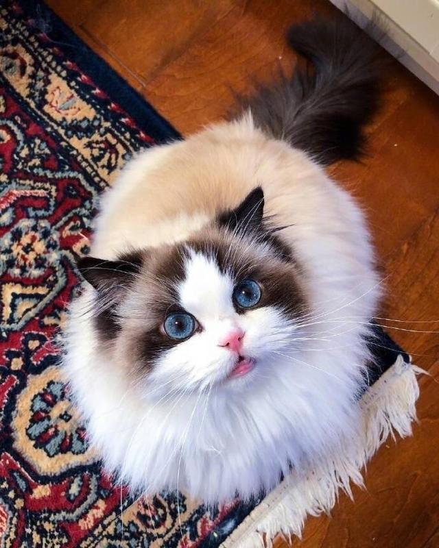 由于布偶猫的毛发比较长,建议勤给它梳毛,还可以挑选一款含鱼油成分的猫粮。