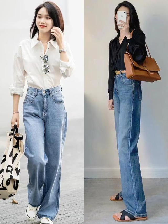 日常穿搭的话,牛仔阔腿裤绝对是不错的选择,与衬衫搭配休闲且不失大气,还美得很有格调。
