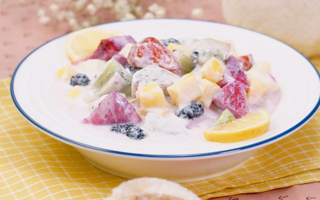 – 新鲜水果拌上希腊酸奶和蔓越莓。