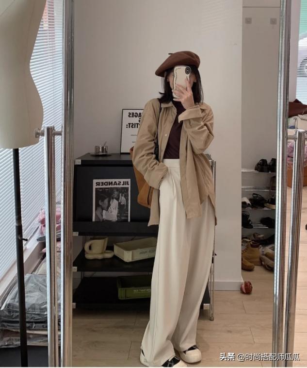 一、今年的高级品味穿搭,具备一条杏裤足够