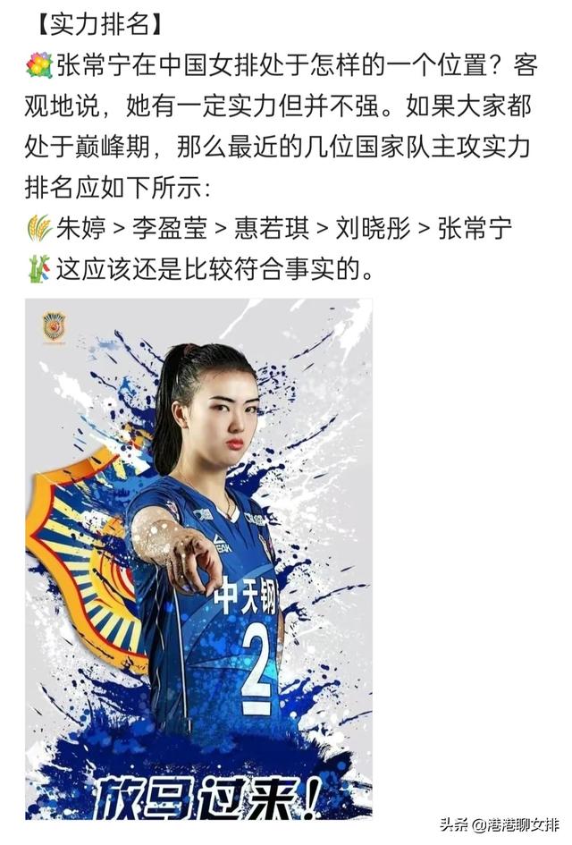 意外!张常宁实力不如惠若琪、刘晓彤?朱婷排第一,李盈莹夺第二