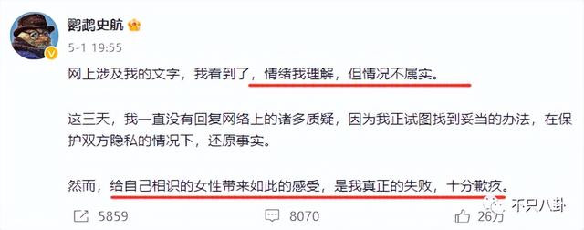 就在众多女孩为自己发声维权之初,史航神隐,一直没有吭声,直到不少与他合作的机构宣布暂停合作,史航终于在五月一号劳动节当天回应了。