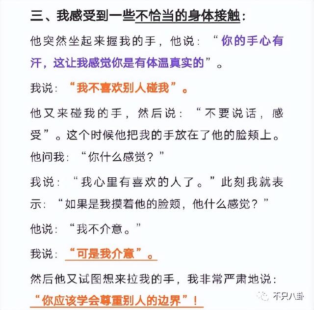 史航抢走她的包要送她回家,在车上史航越来越过分,从吮吸耳朵到往裙底摸,女孩更懵了。很痛心的是,这位受害女孩还是“讨好型人格”,最紧张的是怕司机认为她是不正经的人。