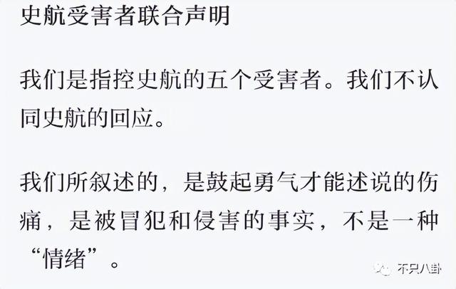 但受害女孩显然不同意史航的说法,其中五位受害者联合发出声明,表示: