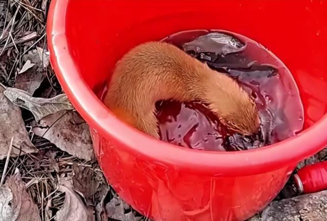 不得不说,这黄鼠狼还挺会挑的。有一次,钓鱼人钓上来两条大大的鲫鱼,原本想着带回家煲汤。谁料,这黄鼠狼也打得一手好算盘,看上了这两条鱼,直接当场就抓着吃掉了,吃得肚子鼓鼓的,而后往地上一趴,躺着不动了。真会享受哈!