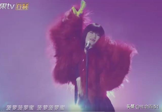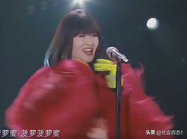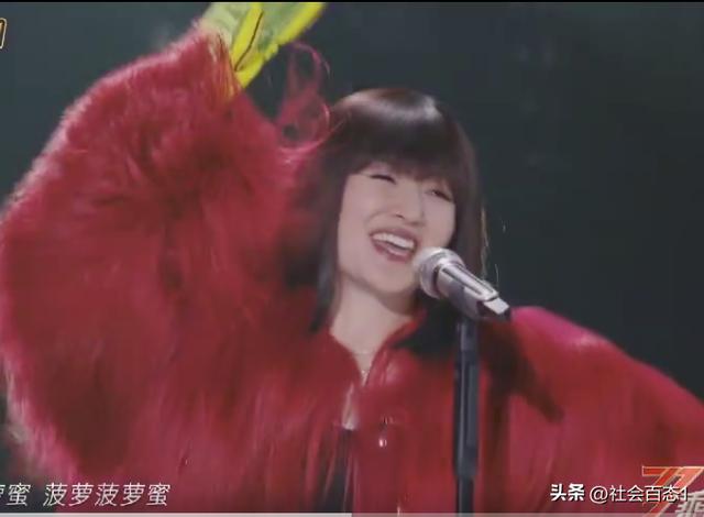 谢娜也唱了自己的成名曲《菠萝菠萝蜜》,这首歌可以说是烂大街的存在,总体感觉就是闹腾,几乎听一遍就差不多能记住歌词,谢娜下面黑裤子,上面红色长毛皮草,绿色手套很是抢眼,搭配披肩直发,看起来又飒又漂亮