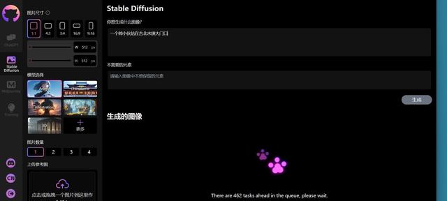 今天发现一个不错的网站,整合了ChatGPT、Stable Diffusion和Midjourney的应用,还支持自己模型的训练,后续还会有免费的资源可以用。