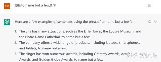 我们还可以用它来造句,以加深对单词和短语的理解。比如你可以输入:使用to name but a few造句