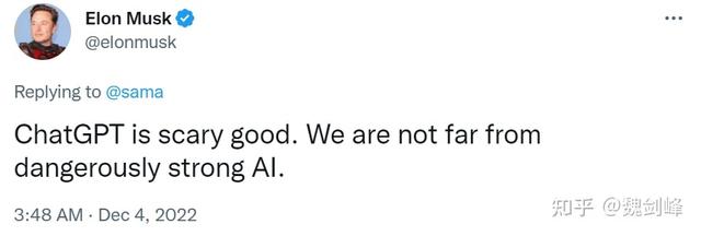 与之前其他聊天机器人相比,ChatGPT的性能有了巨大提升。它可以回答后续问题,承认错误,挑战不正确的前提,甚至修改代码中的 bug,具有非常多潜在的应用场景。ChatGPT的功能是如此强大,以此连马斯克都认为“我们离强大到危险的 AI 不远了”。