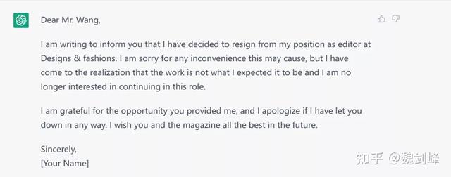 得到的结果非常好,甚至能直接当辞职信模板了: