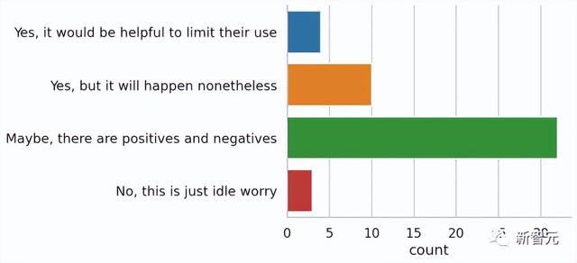 最后是导师和教授们对于禁用LLM写作的看法:大部分人的观点是有利有弊,不过总体来说业界更倾向于禁用LLM,4%左右的教授认为「限制LLM的使用可能会有作用」,10%的教授认为「虽然应该禁用,但有人仍然会用」。