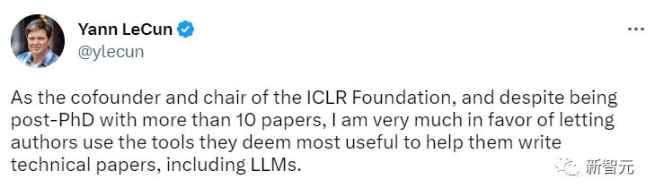 图灵奖得主Yann LeCun转发了推特并表示,作为ICLR基金会的联合创始人和主席,我也是博士后,并且发表了不止10篇论文,但我非常赞成让作者使用他们认为最有用的工具来帮助他们撰写技术论文,包括大型语言模型。