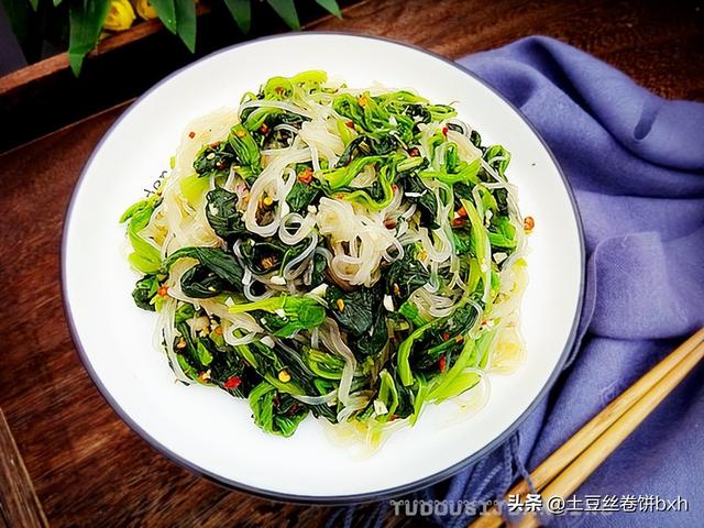 做法:菠菜洗干净,烧开水,放入菠菜焯烫一下。如果直接凉拌,要等水再次煮开就捞出,如果还要炒或是放汤,就烫10秒就行,烫好的菠菜捞出控水晾到温热放入剁碎的大蒜和煮熟的粉丝;接着放入辣椒油,盐,香油,味素,醋和糖拌匀即可。