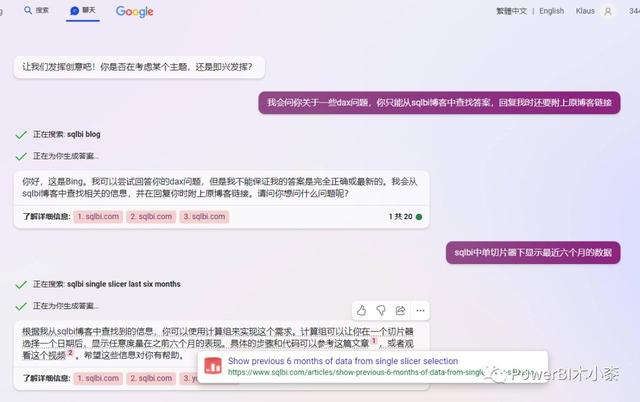 作为搜索引擎,不能忘本,搜索是少不了的,比如在之前介绍的直接对话sqlbi博客,即能搜索到想要的文章链接,又能对文章进行总结,这点比ChatGPT动不动就自己编链接好太多了。