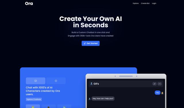第二个GPT-4免费体验工具是Ora AI。登陆后,你不仅可以使用GPT-4,还可以训练你自己的AI机器人。你只需要给它起一个名字,然后输入你想让这个机器人回答什么类型的问题,你就可以创建一个你自己的机器人了,这个我们今天不演示,我们今天主要是讲怎么使用免费的gpt4,我们点击左侧的Explore这里你就能找到GPT4大型语言模型了,每天有5个免费问题名额,虽然有点少,但是重要的是我们一毛钱没花,而且我觉得对于非重度用户来说已经足够了。