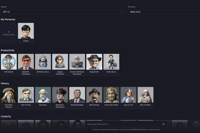 说到免费最后要说的这个Forefront ai 真的是妥妥的免费,让你免费使用gpt4,是不是无限次数不知道,最起码我到现在还没有被限制过,我们进入网站后,如果没有账号可以注册一个,如果有谷歌账号可以直接选择登陆。登陆进去后你可以选择模型和角色,它这里预设了非常多的角色,比如程序员、营销专家、历史名人和明星等等,测试了那么多的ai工具,好像目前就只有这个有这个功能。