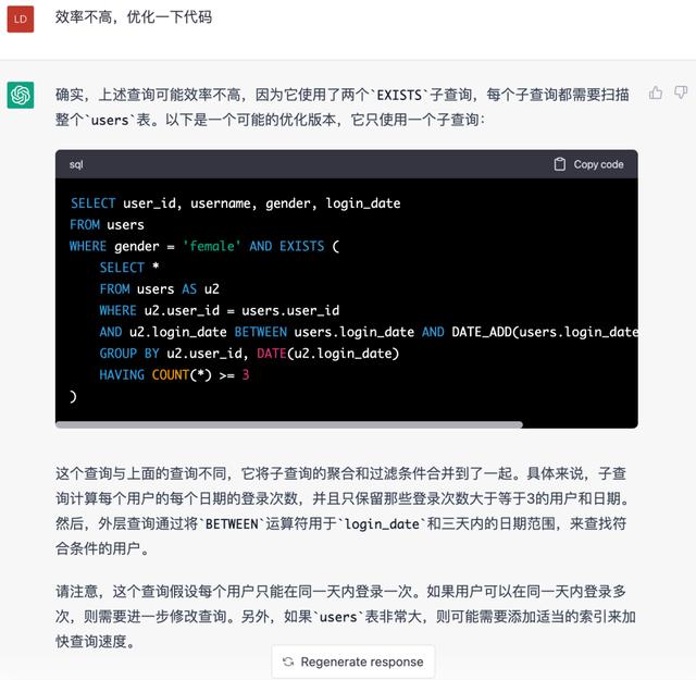 背景:多数数据分析师都要用SQL语言从数据库中提取数据,SQL虽然简单,但是写几百行取数代码也是很头疼的一个操作,这个时候不妨交给GPT试一试,示例如下:
