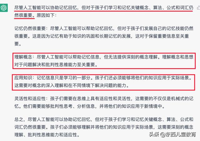 ChatGPT的回答中提到的两点很重要:一个是在记忆基础上的理解,一个是对记忆知识的应用。